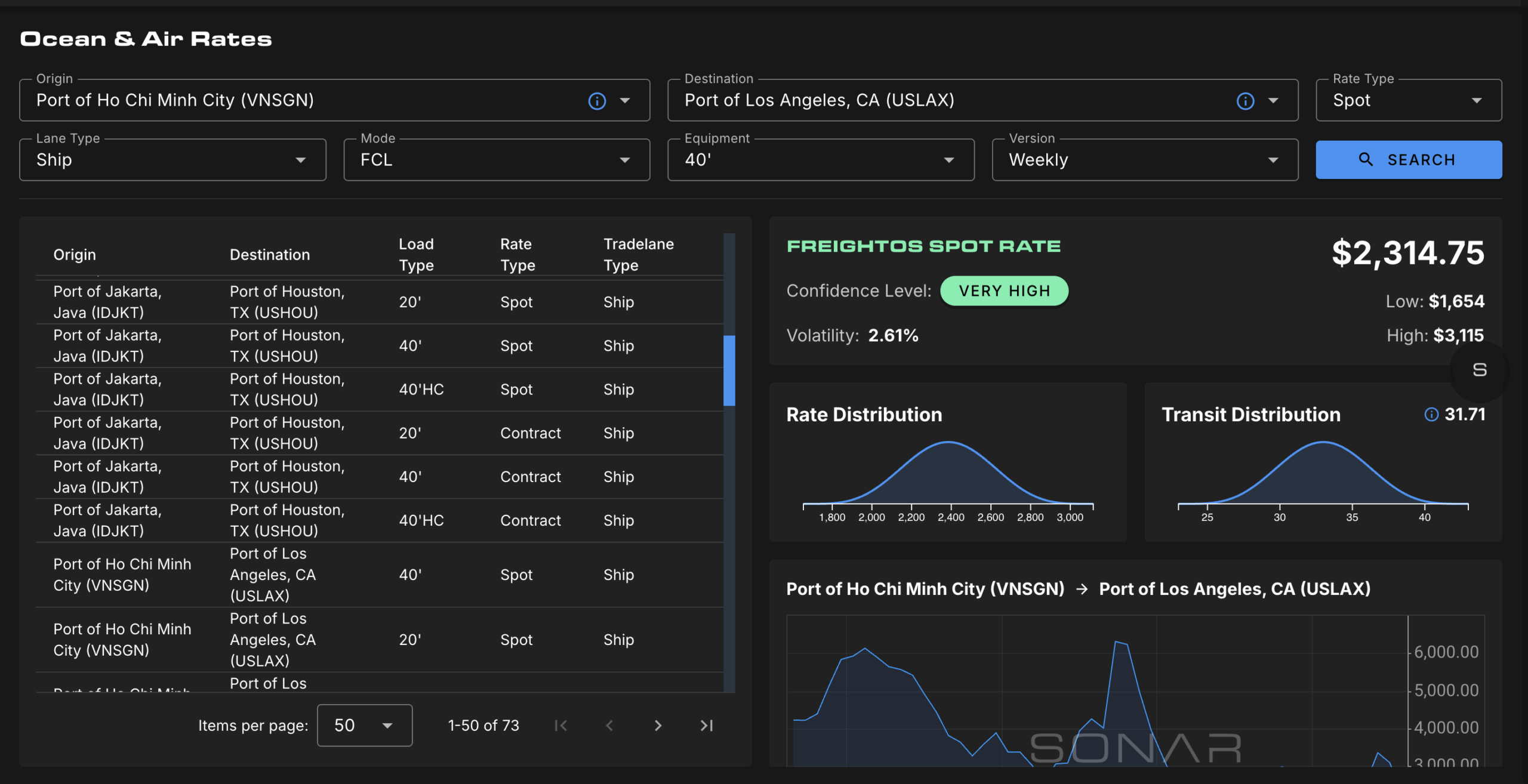Our new dashboard brings daily global ocean and air rate visibility directly into SONAR. Users can: