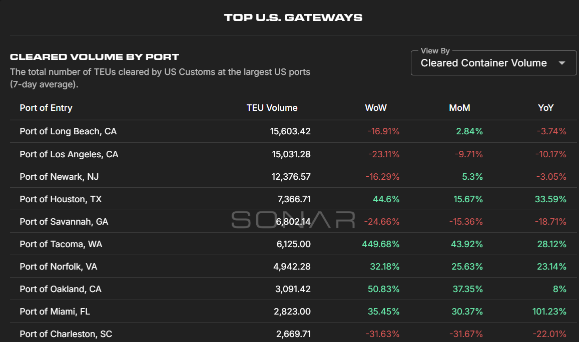 The stock market has been breaking records this week in anticipation of a trade deal with China. Assuming a trade deal comes to fruition, the impacts on global supply chains will be seen throughout SONAR. Here are a few examples that come to mind: