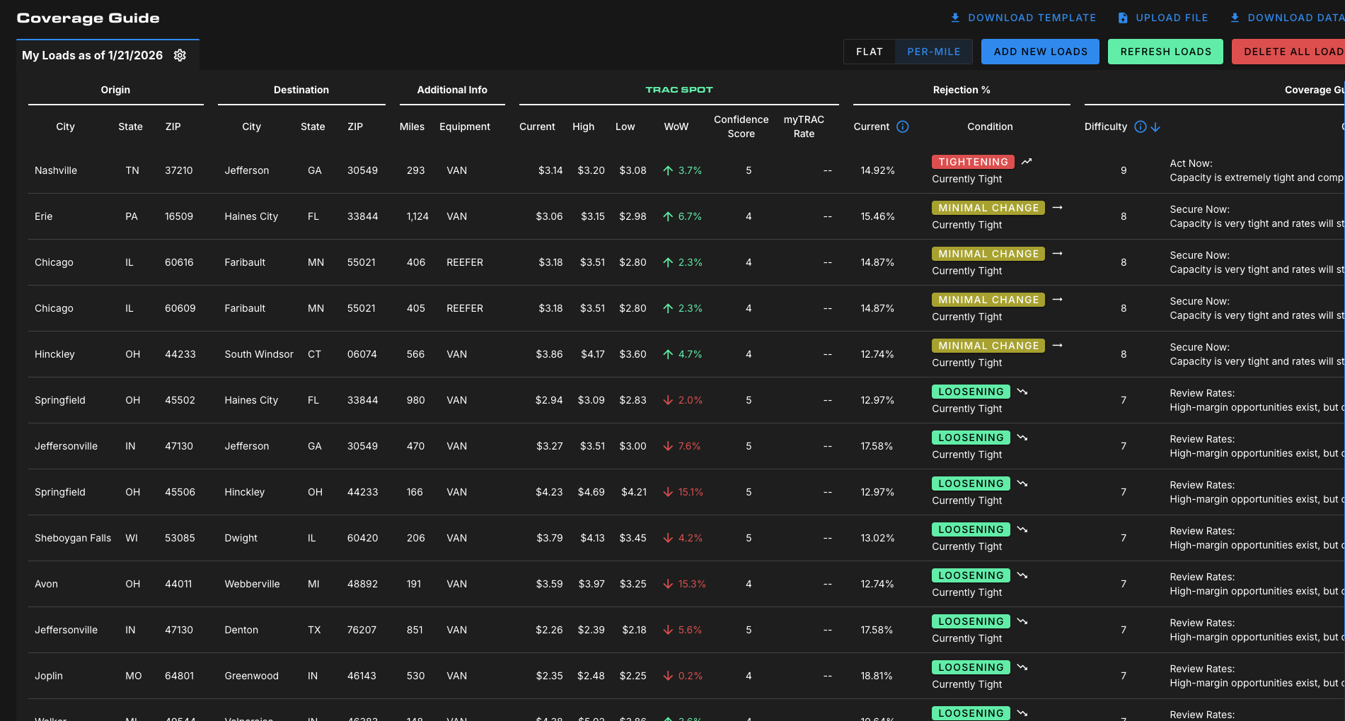 For brokers managing hundreds or thousands of lanes, this visibility is critical for prioritization—not all freight deserves the same response.