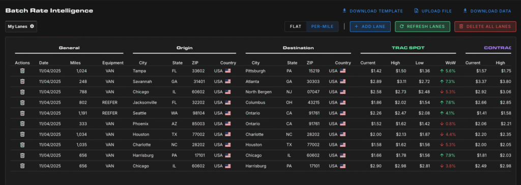 Secure more loads with rates that reflect current market conditions. TRAC collects trucking data daily from a consortium of enterprise 3PLs adhering to a standardized protocol. SONAR’s TRAC spot rate methodology incorporates data at the point of booking to provide the most accurate insight into freight pricing.